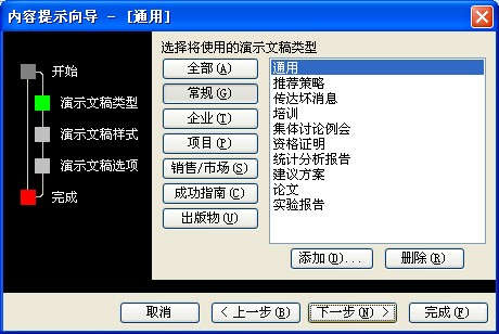 ② 单击【下一步】按钮,打开的【内容提示向导-[通用]】对话框。