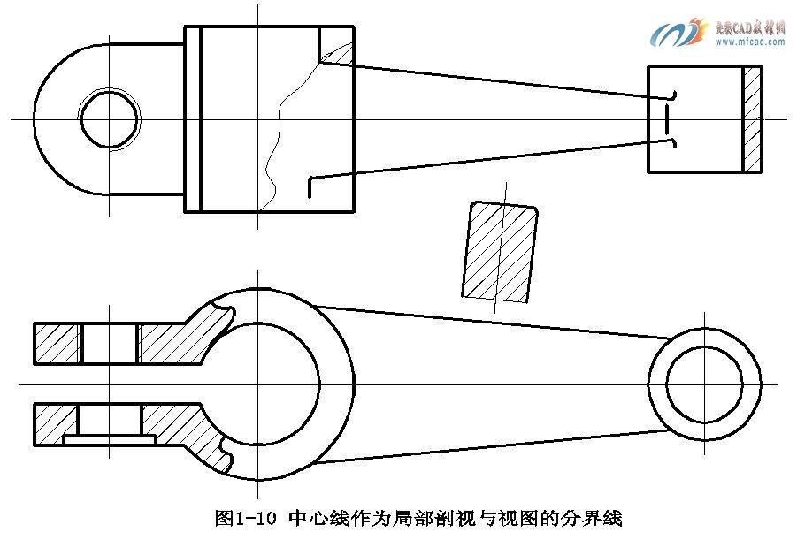 (2)在同一视图中采用局部剖视的数量不宜过多,以免使图形支离破碎,影响视图的清晰。