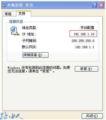 二、检查本地连接的IP地址与路由器LAN口IP处于同一网段,若不在同一网段,可以尝试手工配置IP地址、子网掩码及默认网关,如上图所示