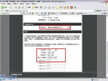 WEP加密有两种选择,一种是64Bit,一种是128Bit。