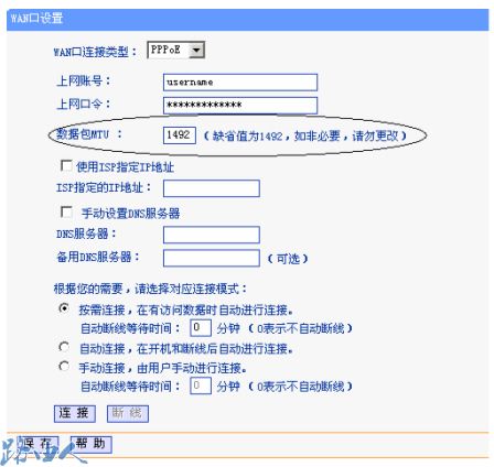 其接入设置发式和ADSL相同。但在有的地方,会遇到可以上QQ,但不能打开网页,这时需要您登陆TP-LINK路由器,网络参数里WAN口设置下,将MTU的值改小,默认的是1492。