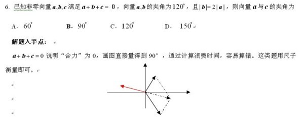 本题表面考查的是向量计算和三角函数之间的关系。如果一开始设置未知向量进行计算,不仅计算量大,而且容易出错。