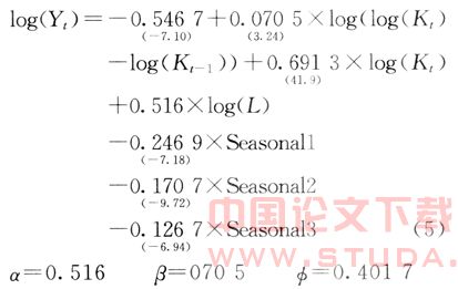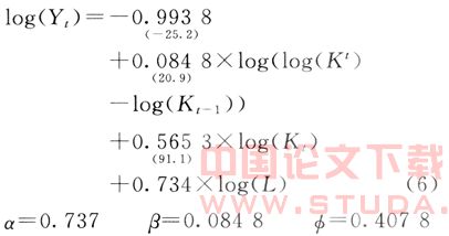 中国的内生经济增长模型为: