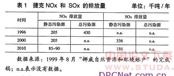GREENSTAMP方法最早的实证结果是,对捷克的一项研究中得到的。主要是对氮氧化物(NOx)和硫氧化物(SOx)两种污染物估计了相应的避免成本曲线,NOx和SOx是导致光化学烟雾和酸雨的主要污染物。研究涉及的污染源都是静态污染源(污染源有静态和可移动之分),目前静态污染源的NOx和 SOx排放量呈下降趋势,而可移动污染源的排放量却是呈上升趋势,因此,NOx和SOx总排放量是不能确定的。在对捷克的研究中,给出了1996年的 NOx 和SOx总排放量和2000年、2010年的估计量(仅对静态污染源来讲)的数据,它们都是根据捷克大气污染源和排放量的记录估计出来的,实证结果见下表 1。