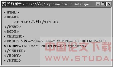 (1)WIDTH和HEIGHT两项后的数据表示课件在浏览器中显示区域的大小,建议与Authorware制作时所用窗口大小相同。