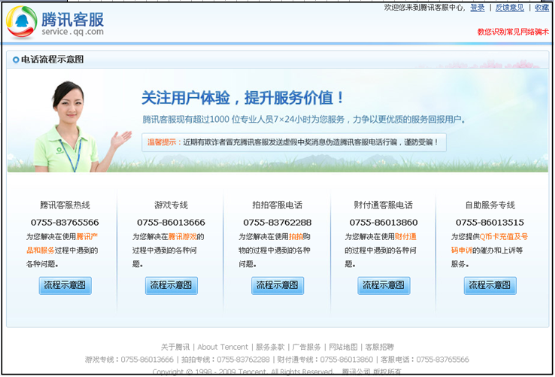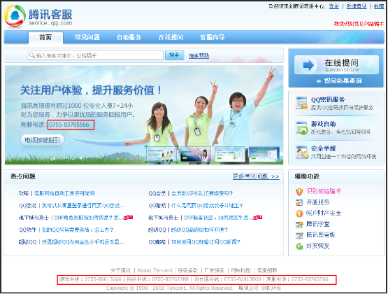 腾讯客服网站:http://kf.qq.com/或者http://service.qq.com/
