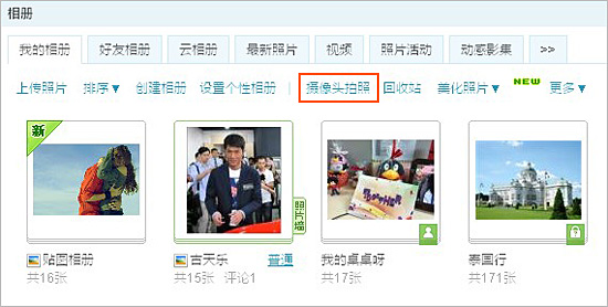 一、首先,请您进入QQ空间,点击“相册”,在“我的相册”下提供了单独摄像头拍照功能;